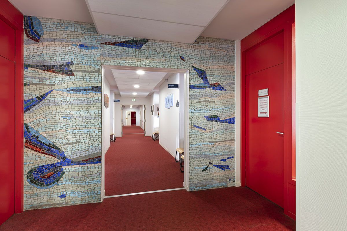 La procédure dite du « 1% artistique » est à l’origine de toutes ces œuvres. Initiée en 1951, on lui donne ce nom parce qu’elle repose sur 1% du budget de construction d’un bâtiment public. Il s’agit d’une procédure obligatoire de « décoration des constructions publiques » qui s’impose aux collectivités publiques et à l’Etat. Elle vise à soutenir les artistes et à inscrire l’art dans le quotidien des citoyens. La procédure prend la forme d’un marché public accompagné par une instance de concertation, le comité artistique, chargé de proposer un cahier des charges et d’émettre des avis jusqu’au choix du lauréat.