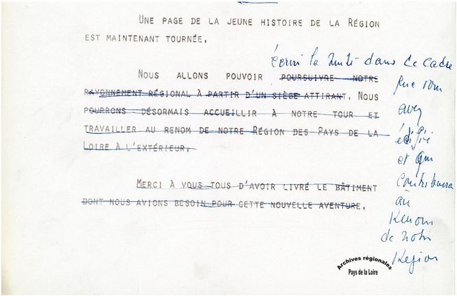 - 25W 45 : dossier d’inauguration de l'Hôtel de Région (janvier 1987) (Archives des Cabinets des présidents du Conseil régional de 1974 à 2004) ;