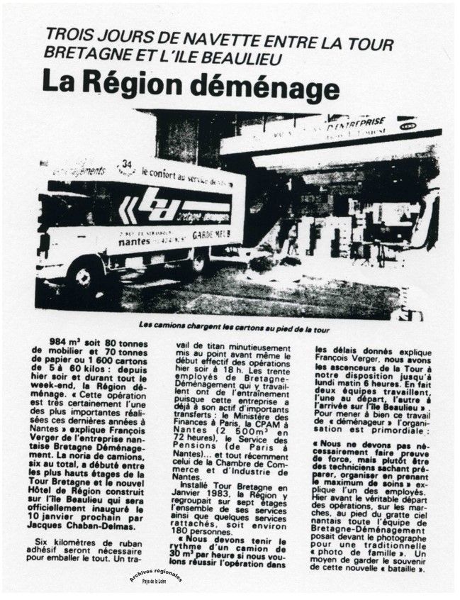 L’offre de la société chargée du déménagement – Bretagne Déménagements – insiste bien sur le « volume important » à transférer d’un quartier de Nantes à un autre. C’est un article de presse qui nous apporte les précisions chiffrées : le tout représente 984 m3 pour 80 tonnes de mobilier et 70 tonnes de papier !