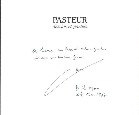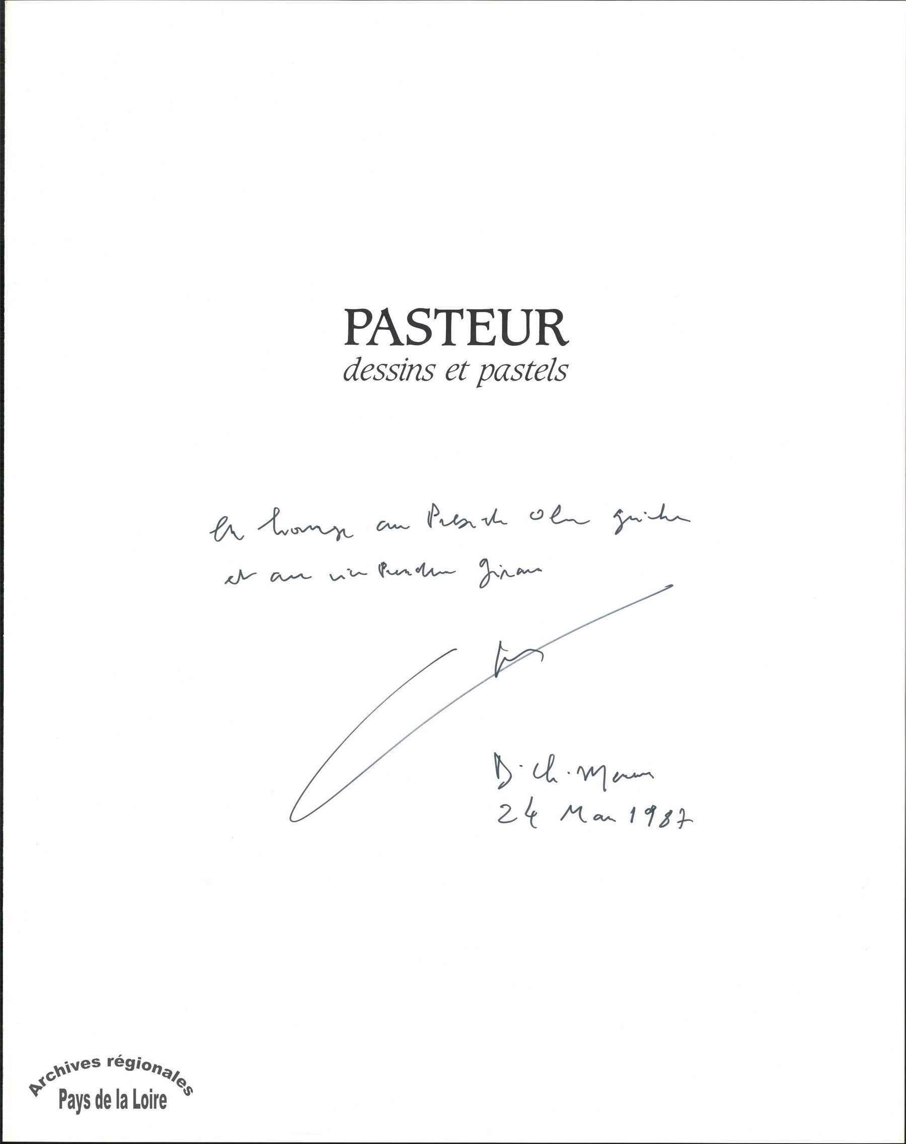23W 865 : "Pasteur. Dessins et pastels". Biographie illustrée, présentant l'œuvre graphique de Louis Pasteur. Publication de prestige dédicacée par Charles Mérieux (1987) (Archives Olivier Guichard).