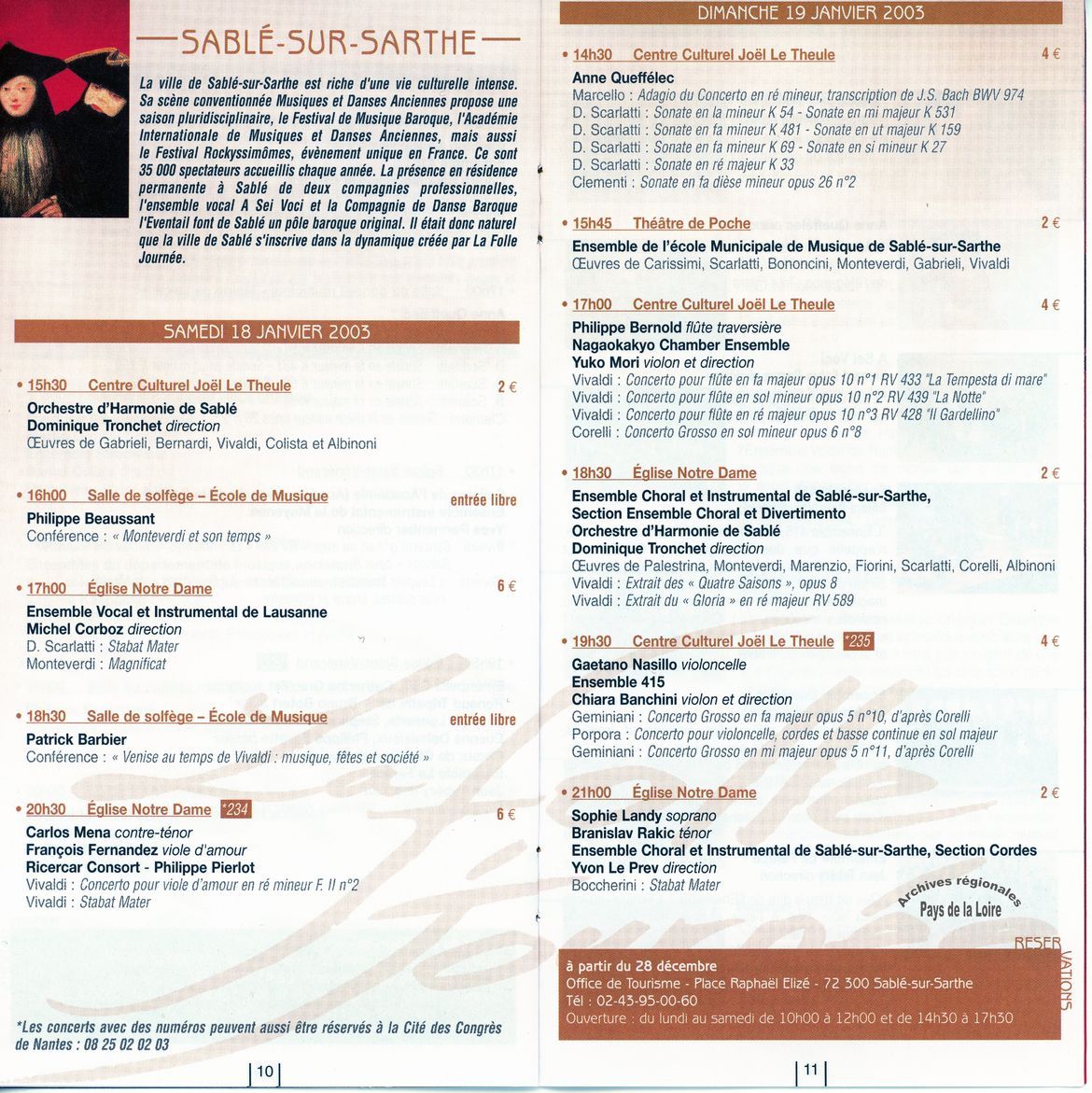 - 445PR 115 : Folle Journée en région 2003, dossiers de partenariat avec les villes accueillant les concerts (Archives Direction Culture et sports) ;