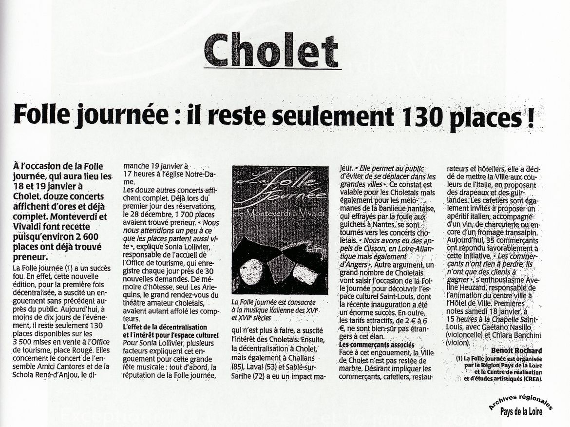 - 461PR 45 : Folle Journée en région 2003, revue de presse (Archives Direction Culture et sports) ;