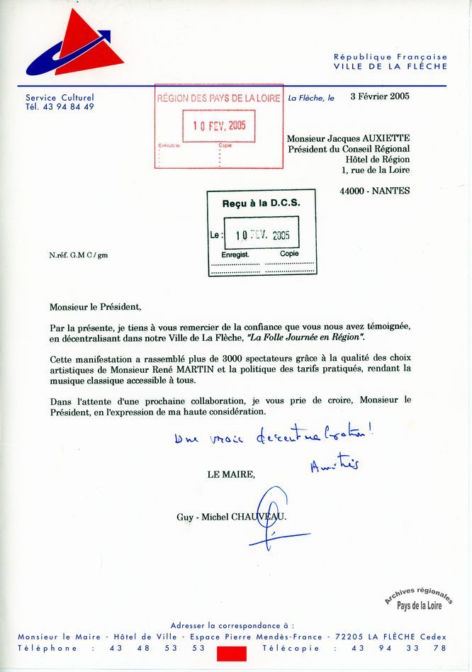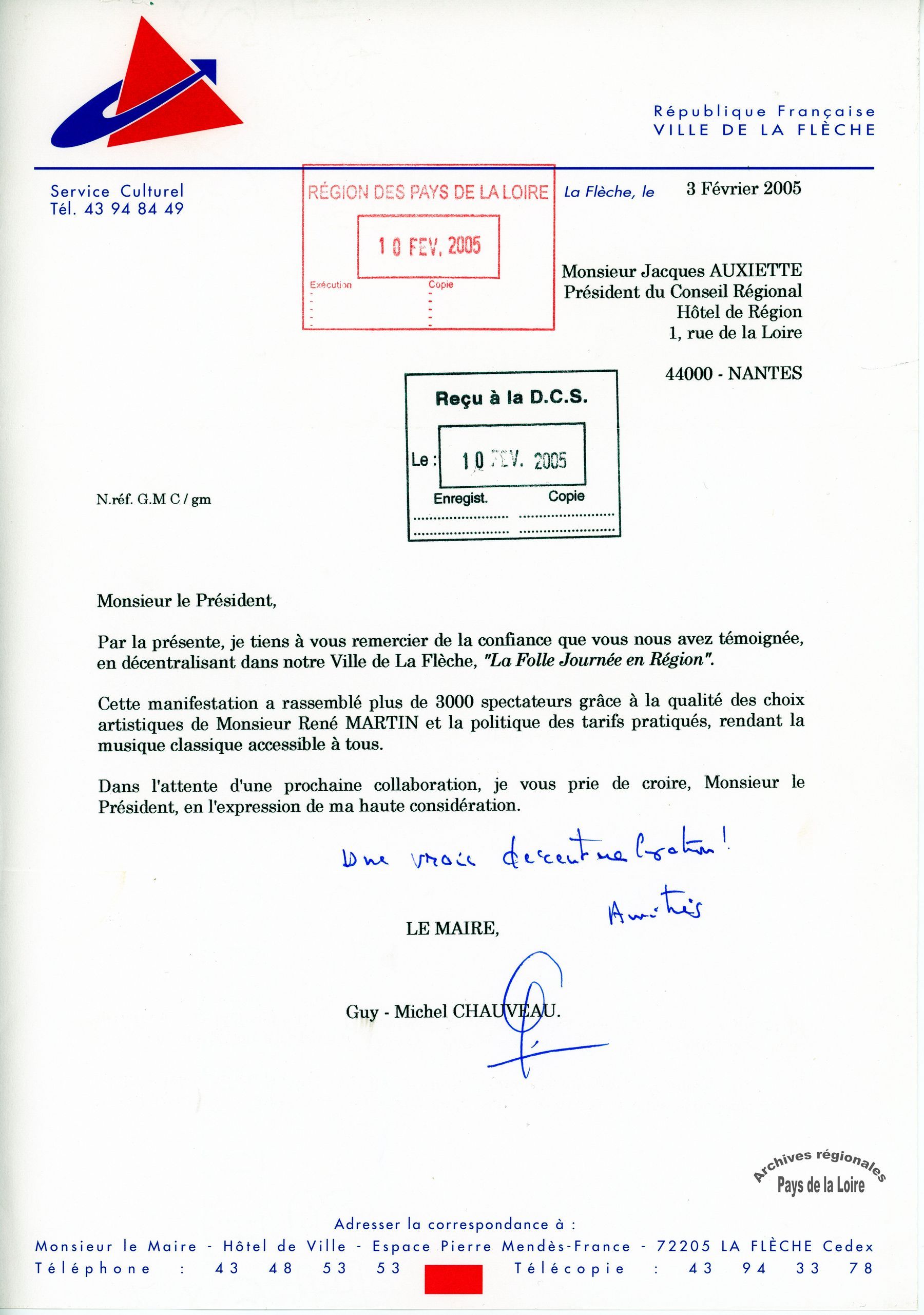 L’opération est saluée par les villes accueillantes également : le maire de La Flèche relève de manière manuscrite qu’il s’agit d’une « vraie décentralisation », dans ce courrier issu des archives du Cabinet du président du Conseil régional Jacques Auxiette.