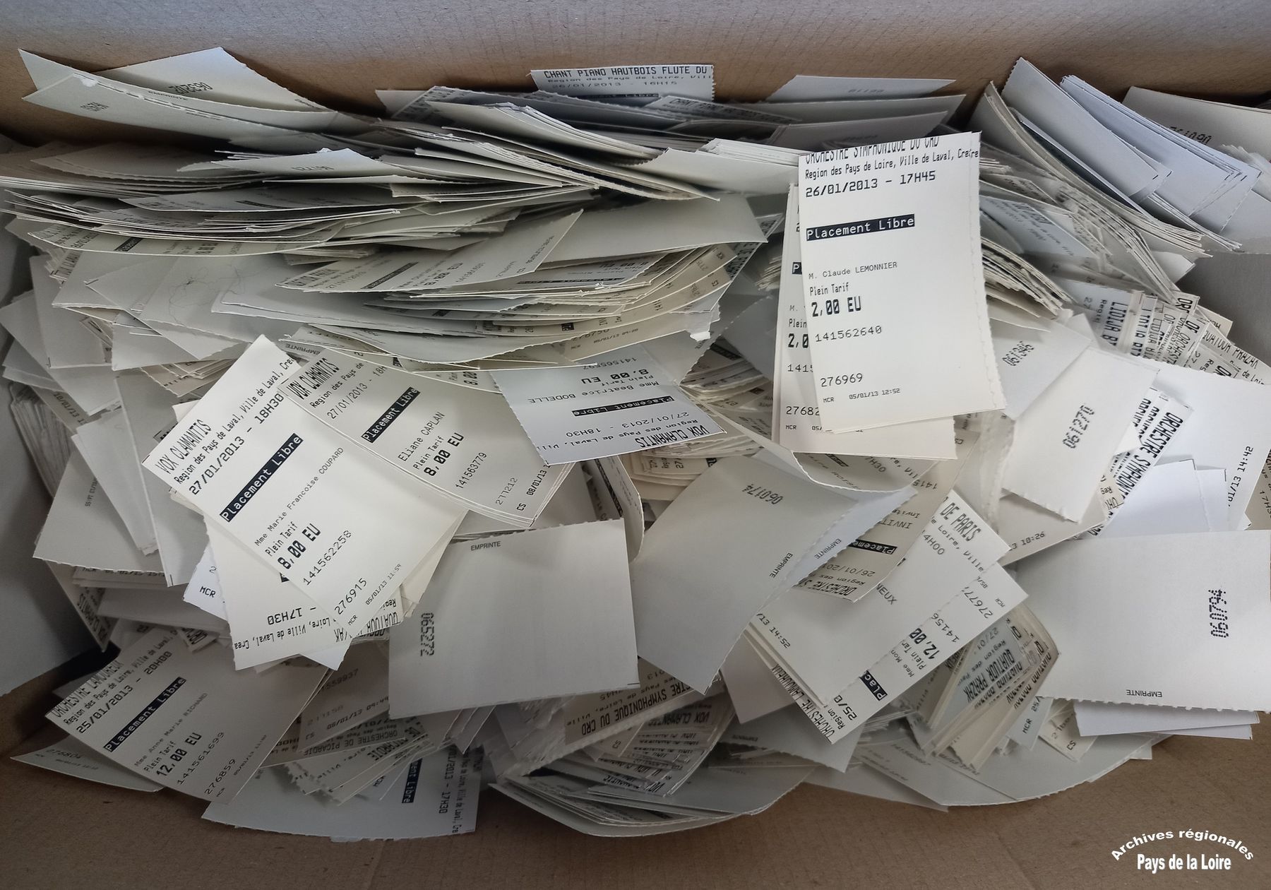 - 559PR 8 : Folle journée en région 2013, souches de billets de la régie de recettes à Laval (Archives Direction Culture, sport et associations).