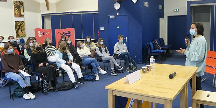 Deux autres athlètes "Ambassadeurs Pays de la Loire Terre de sport" sont allés à la rencontre de lycéens : ainsi, Agnès Raharolahy (licenciée au Nantes métropole athlétisme, en photo), double championne d’Europe d’athlétisme, est intervenue au lycée Jules-Rieffel à Saint-Herblain (44) et Aloïse Retornaz (licenciée au Sports nautiques sablais), médaillée de bronze aux Jeux Olympiques de Tokyo, a échangé avec les élèves du lycée Éric-Tabarly des Sables-d’Olonne (85).