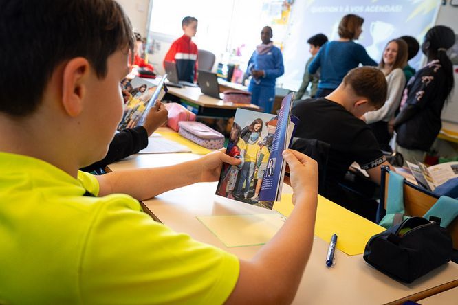C’est une immersion vivante pour apprendre le cyclisme bien au-delà de la compétition. Dans la salle de classe de CM2 de l’école Saint-Exupéry à Avrillé, les cahiers de mathématiques ont laissé place, le temps d’une matinée, à un autre terrain d’apprentissage : le vélo. Cartes des Pays de la Loire dépliées, crayons en main, les élèves explorent le livret de Dynamo, conçu par la Région pour accompagner les écoles situées le long du parcours des quatre étapes du Tour. Géographie, français, éducation morale et civique… le support multiplie les passerelles entre disciplines. « Ce livret a de vraies vertus pédagogiques. Il mobilise plusieurs matières à la fois, de la géographie à la production écrite, et suscite une adhésion immédiate des enfants », souligne Stéphanie Sinou, enseignante de la classe. « Ils comprennent que le vélo, ce n’est pas seulement une course, c’est un territoire, une histoire, des valeurs. »