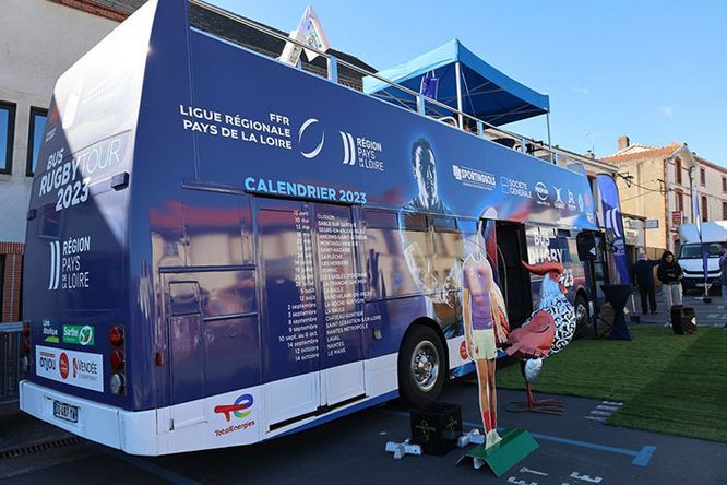 Le 15 avril 2023, Clisson (44) a accueilli le grand départ du programme d’actions et d’animations de la Ligue Pays de la Loire dans le cadre de la coupe du monde 2023. Baptisée Rugby au cœur des terroirs et du territoire ligérien, l’opération propose une série d’animations grand public qui s’articulent autour du Bus du rugby : ce bus est composé d’une partie basse de type vestiaire avec des informations sur la Coupe du monde de rugby 2023 et plusieurs animations. La partie haute du bus faisant office d’espace VIP entre les différentes parties prenantes de l’événement : institutionnel (Région des Pays de la Loire, autres collectivités territoriales), économique (partenaires de l’événement) et du rugby : clubs de rugby, comité départemental de rugby et la Ligue régionale Pays de Loire rugby.