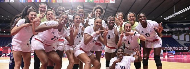 Magnifique performance de l’équipe féminine de handball, offrant à la France sa 10ème médaille d’or. Avec, dans ses rangs, Blandine Dancette (première à gauche sur la photo) la joueuse des Neptunes de Nantes depuis 2017, qui termine ainsi sa carrière internationale et en club en apothéose !
