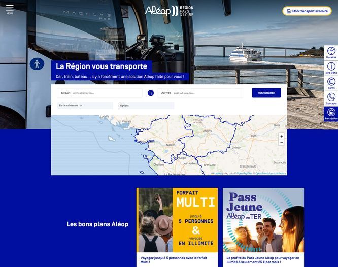 Le site internet aleop.paysdelaloire.fr est dédié au service régional de transport et permet d’accéder facilement à toutes les informations sur le réseau. Le site regroupe les informations des lignes interurbaines, trains régionaux, transports scolaires et à la demande et des liaisons bateaux avec l’Ile d’Yeu : fiches horaires, circuits mais aussi le covoiturage… Il donne par ailleurs les alertes de circulation en temps réel (météo, travaux…). Il permet aussi l’inscription en ligne aux transports scolaires.